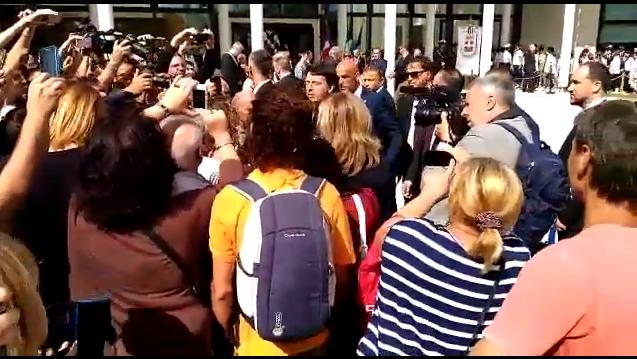 Il Premier si è avvicinato e ha parlato con loro, mentre si è levato un piccolo coro: "Noi votiamo no", (naturalmente quei servi della Stampa e di Repubblica non ne danno notizia, n.d.r.) riferito al referendum costituzionale su cui interverrà nel tardo pomeriggio al Toselli di Cuneo.