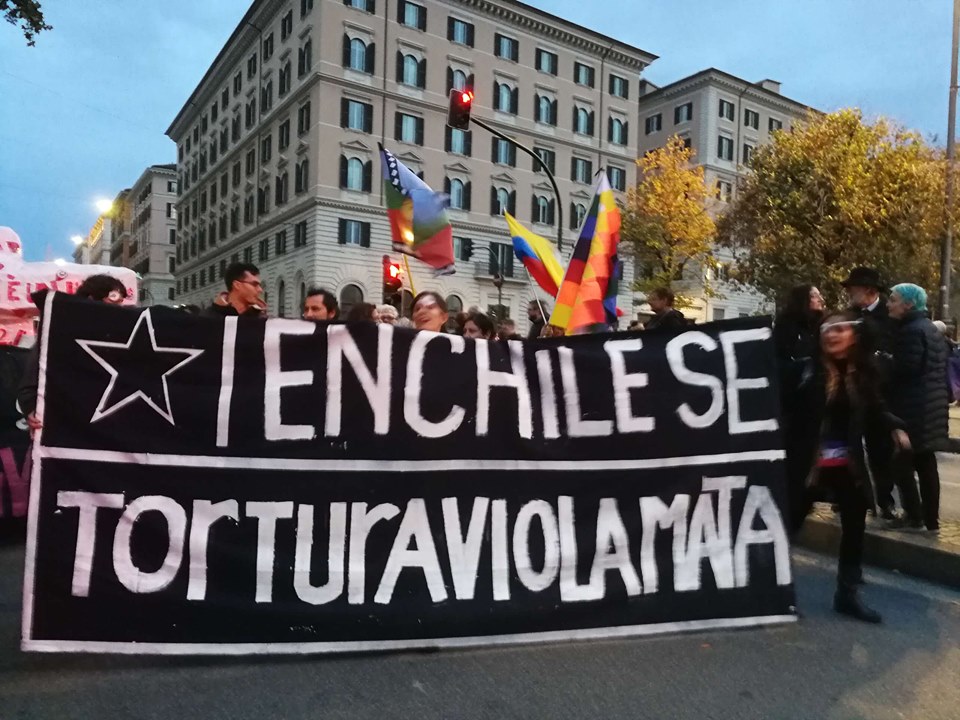 Emozionante è stato quando il corteo lungo via Cavour e all’altezza del Viminale si è fermato e tutti si sono seduti in un silenzio intenso e pesantissimo proprio per ricordare la violenza contro le donne cilene.